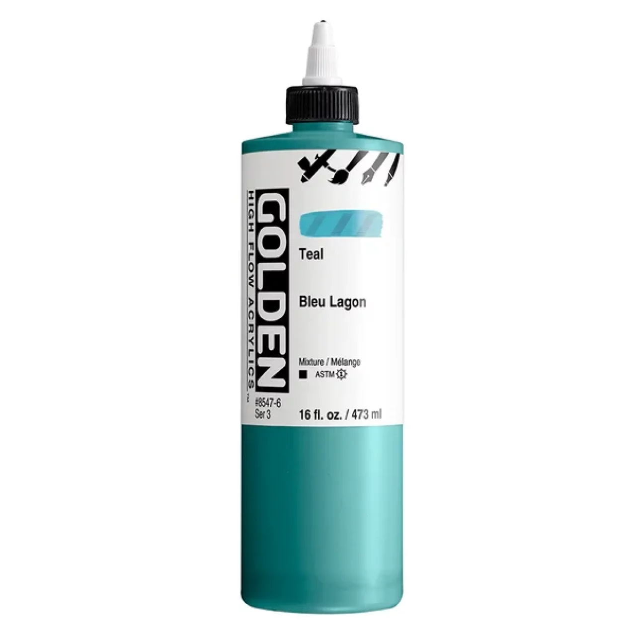 High Flow Acrylics zijn ultradunne verf met een inktachtige consistentie die ongelooflijk veelzijdig is. Ze kunnen rechtstreeks uit de fles worden gebruikt in een airbrush, navulbare marker of kroontjespen en zijn zeer geschikt voor tekenen, beitsen, druppelen, gieten, kalligrafie en kleurwasbeurten. High Flow biedt een palet met veel kleuren met één pigment, evenals fluorescerende en iriserende kleuren. Hoewel het werkt als inkt, is het acrylverf en dus compatibel met andere GOLDEN acrylverfkleuren en -mediums.