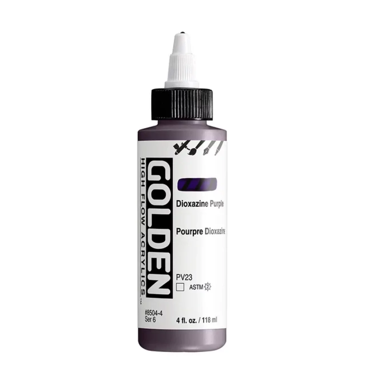 High Flow Acrylics zijn ultradunne verf met een inktachtige consistentie die ongelooflijk veelzijdig is. Ze kunnen rechtstreeks uit de fles worden gebruikt in een airbrush, navulbare marker of kroontjespen en zijn zeer geschikt voor tekenen, beitsen, druppelen, gieten, kalligrafie en kleurwasbeurten. High Flow biedt een palet met veel kleuren met één pigment, evenals fluorescerende en iriserende kleuren. Hoewel het werkt als inkt, is het acrylverf en dus compatibel met andere GOLDEN acrylverfkleuren en -mediums.