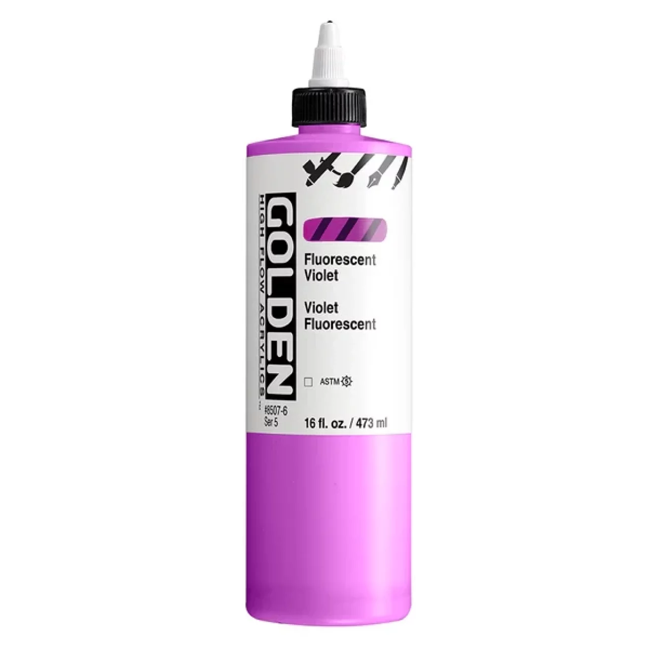 High Flow Acrylics zijn ultradunne verf met een inktachtige consistentie die ongelooflijk veelzijdig is. Ze kunnen rechtstreeks uit de fles worden gebruikt in een airbrush, navulbare marker of kroontjespen en zijn zeer geschikt voor tekenen, beitsen, druppelen, gieten, kalligrafie en kleurwasbeurten. High Flow biedt een palet met veel kleuren met één pigment, evenals fluorescerende en iriserende kleuren. Hoewel het werkt als inkt, is het acrylverf en dus compatibel met andere GOLDEN acrylverfkleuren en -mediums.