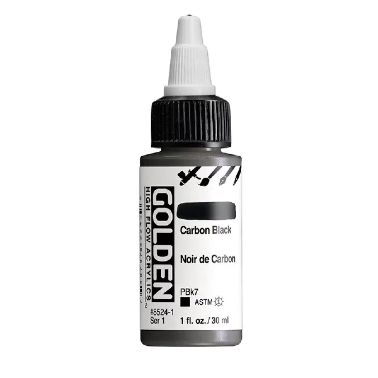 High Flow Acrylics zijn ultradunne verf met een inktachtige consistentie die ongelooflijk veelzijdig is. Ze kunnen rechtstreeks uit de fles worden gebruikt in een airbrush, navulbare marker of kroontjespen en zijn zeer geschikt voor tekenen, beitsen, druppelen, gieten, kalligrafie en kleurwasbeurten. High Flow biedt een palet met veel kleuren met één pigment, evenals fluorescerende en iriserende kleuren. Hoewel het werkt als inkt, is het acrylverf en dus compatibel met andere GOLDEN acrylverfkleuren en -mediums.