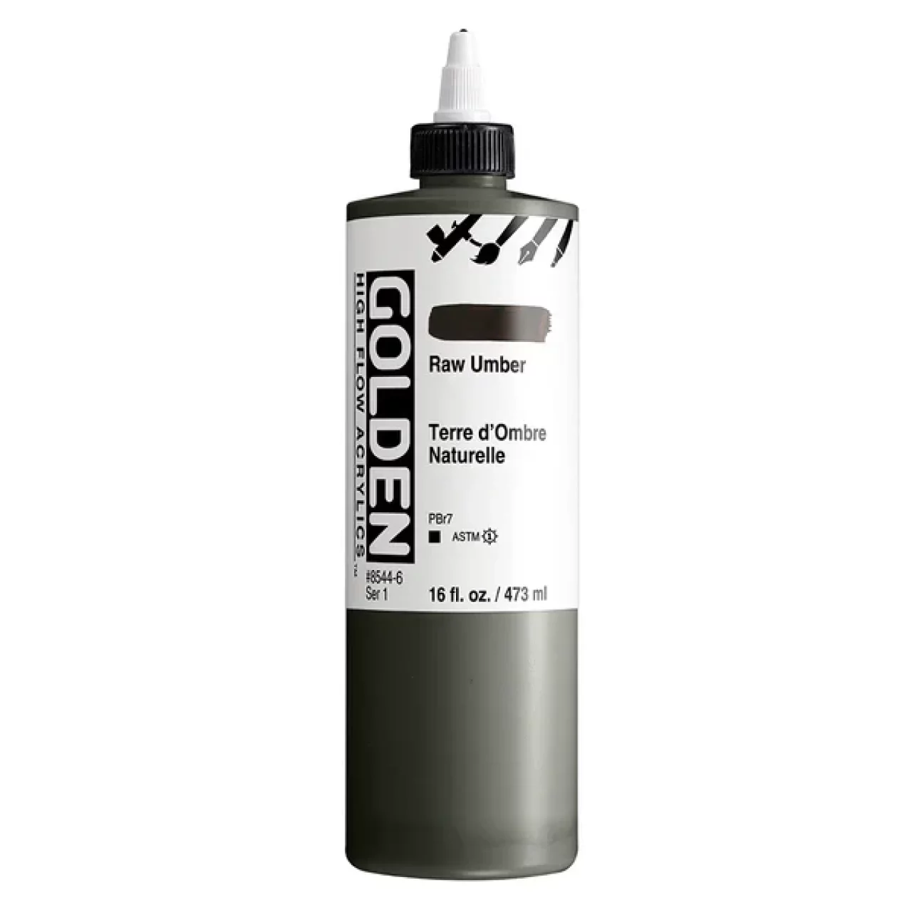 High Flow Acrylics zijn ultradunne verf met een inktachtige consistentie die ongelooflijk veelzijdig is. Ze kunnen rechtstreeks uit de fles worden gebruikt in een airbrush, navulbare marker of kroontjespen en zijn zeer geschikt voor tekenen, beitsen, druppelen, gieten, kalligrafie en kleurwasbeurten. High Flow biedt een palet met veel kleuren met één pigment, evenals fluorescerende en iriserende kleuren. Hoewel het werkt als inkt, is het acrylverf en dus compatibel met andere GOLDEN acrylverfkleuren en -mediums.