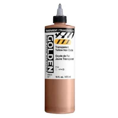 High Flow Acrylics zijn ultradunne verf met een inktachtige consistentie die ongelooflijk veelzijdig is. Ze kunnen rechtstreeks uit de fles worden gebruikt in een airbrush, navulbare marker of kroontjespen en zijn zeer geschikt voor tekenen, beitsen, druppelen, gieten, kalligrafie en kleurwasbeurten. High Flow biedt een palet met veel kleuren met één pigment, evenals fluorescerende en iriserende kleuren. Hoewel het werkt als inkt, is het acrylverf en dus compatibel met andere GOLDEN acrylverfkleuren en -mediums.