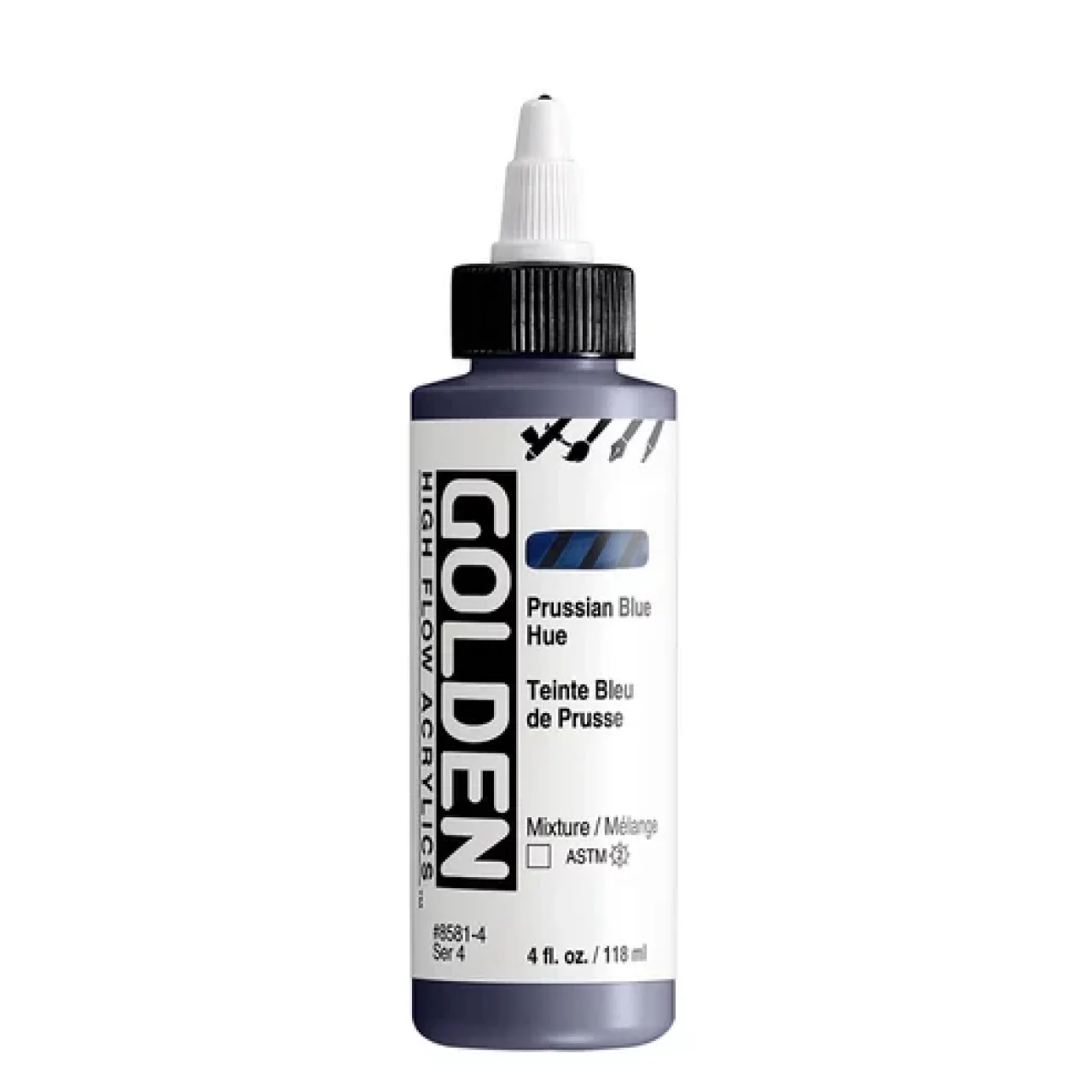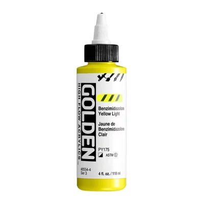 High Flow Acrylics zijn ultradunne verf met een inktachtige consistentie die ongelooflijk veelzijdig is. Ze kunnen rechtstreeks uit de fles worden gebruikt in een airbrush, navulbare marker of kroontjespen en zijn zeer geschikt voor tekenen, beitsen, druppelen, gieten, kalligrafie en kleurwasbeurten. High Flow biedt een palet met veel kleuren met één pigment, evenals fluorescerende en iriserende kleuren. Hoewel het werkt als inkt, is het acrylverf en dus compatibel met andere GOLDEN acrylverfkleuren en -mediums.