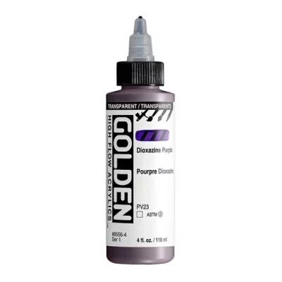 High Flow Acrylics zijn ultradunne verf met een inktachtige consistentie die ongelooflijk veelzijdig is. Ze kunnen rechtstreeks uit de fles worden gebruikt in een airbrush, navulbare marker of kroontjespen en zijn zeer geschikt voor tekenen, beitsen, druppelen, gieten, kalligrafie en kleurwasbeurten. High Flow biedt een palet met veel kleuren met één pigment, evenals fluorescerende en iriserende kleuren. Hoewel het werkt als inkt, is het acrylverf en dus compatibel met andere GOLDEN acrylverfkleuren en -mediums.