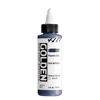 High Flow Acrylics zijn ultradunne verf met een inktachtige consistentie die ongelooflijk veelzijdig is. Ze kunnen rechtstreeks uit de fles worden gebruikt in een airbrush, navulbare marker of kroontjespen en zijn zeer geschikt voor tekenen, beitsen, druppelen, gieten, kalligrafie en kleurwasbeurten. High Flow biedt een palet met veel kleuren met één pigment, evenals fluorescerende en iriserende kleuren. Hoewel het werkt als inkt, is het acrylverf en dus compatibel met andere GOLDEN acrylverfkleuren en -mediums.