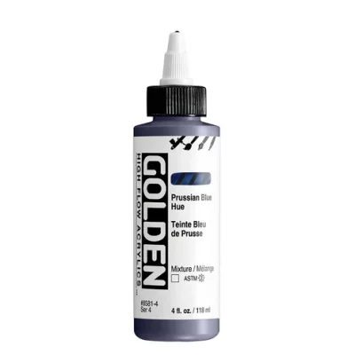 High Flow Acrylics zijn ultradunne verf met een inktachtige consistentie die ongelooflijk veelzijdig is. Ze kunnen rechtstreeks uit de fles worden gebruikt in een airbrush, navulbare marker of kroontjespen en zijn zeer geschikt voor tekenen, beitsen, druppelen, gieten, kalligrafie en kleurwasbeurten. High Flow biedt een palet met veel kleuren met één pigment, evenals fluorescerende en iriserende kleuren. Hoewel het werkt als inkt, is het acrylverf en dus compatibel met andere GOLDEN acrylverfkleuren en -mediums.