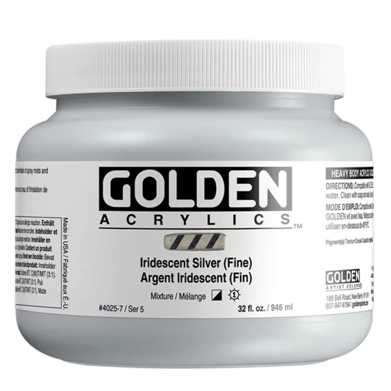 Golden Heavy Body Acrylverf- 4025 Iriserend Zilver (Fijn) 946 ml