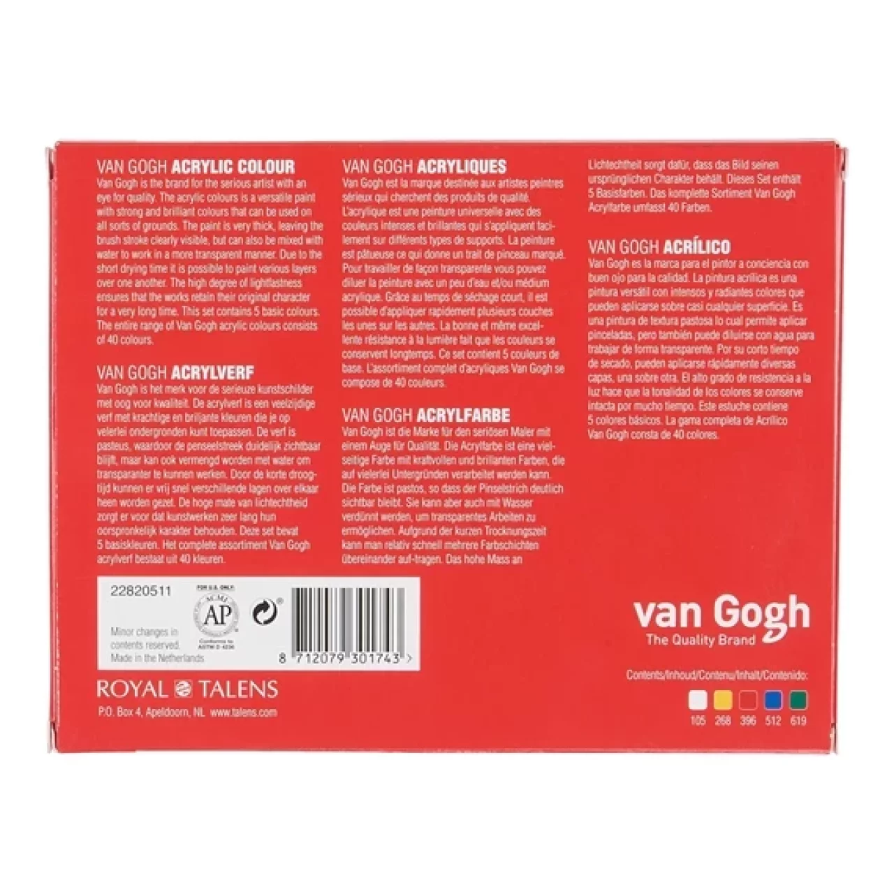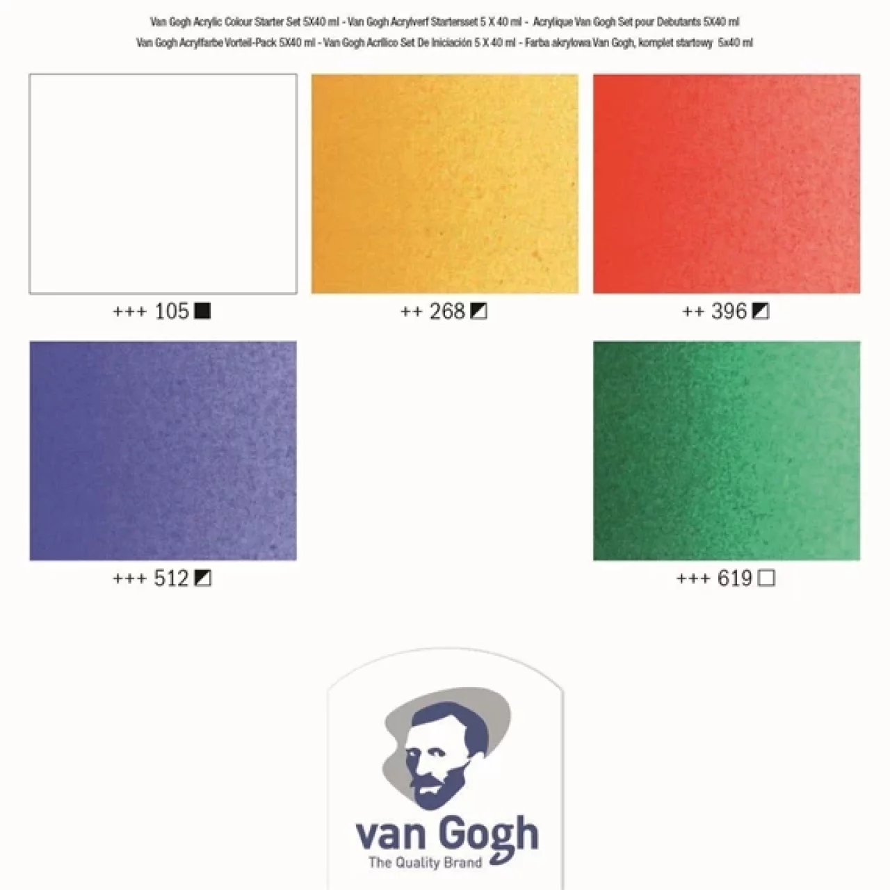 Van Gogh Acrylverf starterset met 5 kleuren in tubes van 40 ml